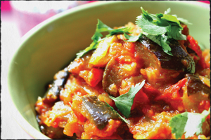 Laissez sur le feu jusqu’à ce que la sauce réduise et que les bringelles soient cuites. Rectifiez le goût si nécessaire.